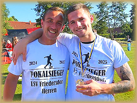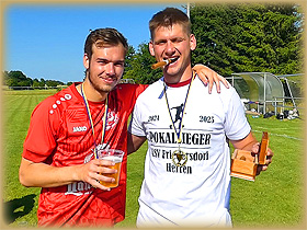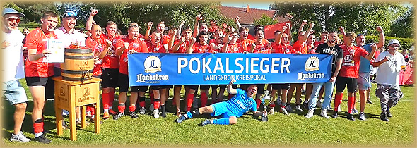 Pokalsieger. Minutenlang kannte die Freude beim LSV keine Grenzen. Zwei Mitarbeiter der Landskronbrauerei waren mit einem 200-€-Gutschein für den Sieger gekommen und zapften Freibier, so