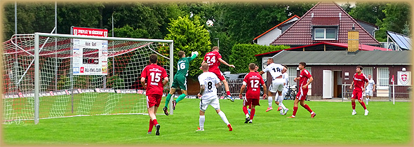 Fingerspitzen über das Tor (22.) und ein Versuch von Tobias Draßdo ging knapp am Tor vorbei (28.). Für die Roten hatte Jockusch eine gute Möglichkeit, doch er scheiterte in guter