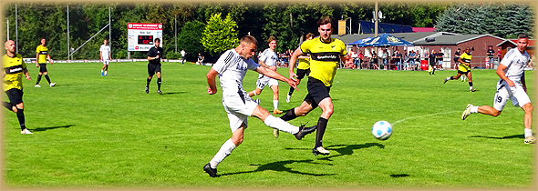 Gästestrafraum mit Marius Riedel einen genauen Doppelpaß und jagte den Ball anschließend in den Torwinkel (45.+2). Ein Traumtor des Neuzugangs, welcher erst vor wenigen Wochen vom