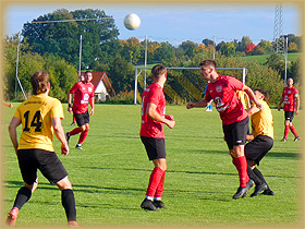 vorbeiging (17.), doch schon wenige Sekunden später erwischte Stein einen weiten Freistoß von Schubert-Biehain optimal und köpfte vom Elfmeterpunkt zum Friedersdorfer Führungstreffer