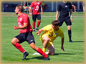 Schuß von Bernsdorf (39.). Die nächste gute Torchance ergab sich für Adam Pasternak. Dessen Schuß entschärfte Keeper Kiefer auf der Linie (40.). Dann war Halbzeitpause und