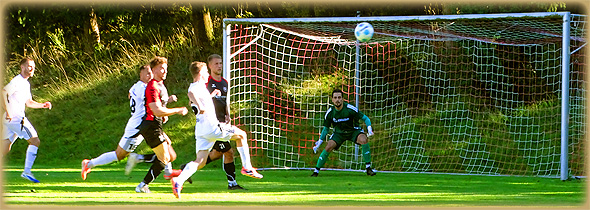 Möglichkeit zum Ausgleich, doch seinen Abschluß nach einem wilden Strafraumgewusel klärten die Gastgeber mit vereinten Kräften. Die Schlußphase der Partie läuteten